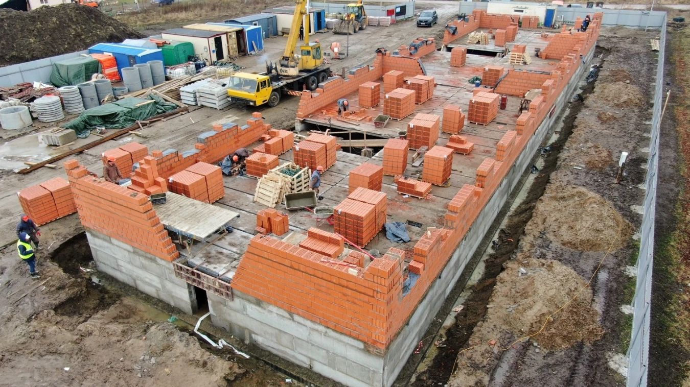 Строительство здания содержания молодняка КРС на территории животноводческого комплекса в Калининградской обл., пос. Высокое.